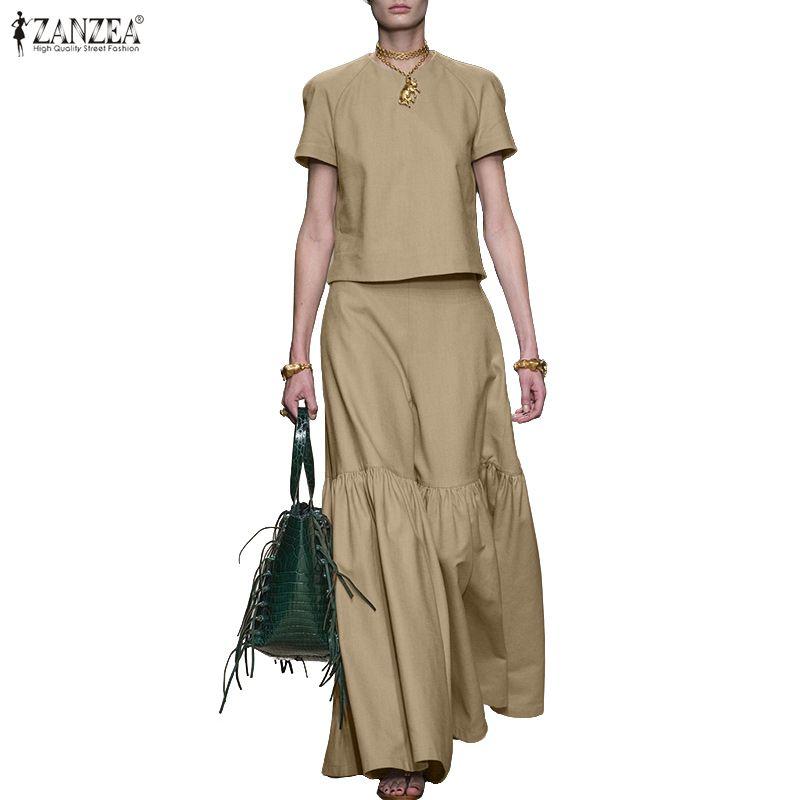 ZANZEA Women Short Sleeve Blouse and Long Skirts Summer Two Piece Suit Sets
