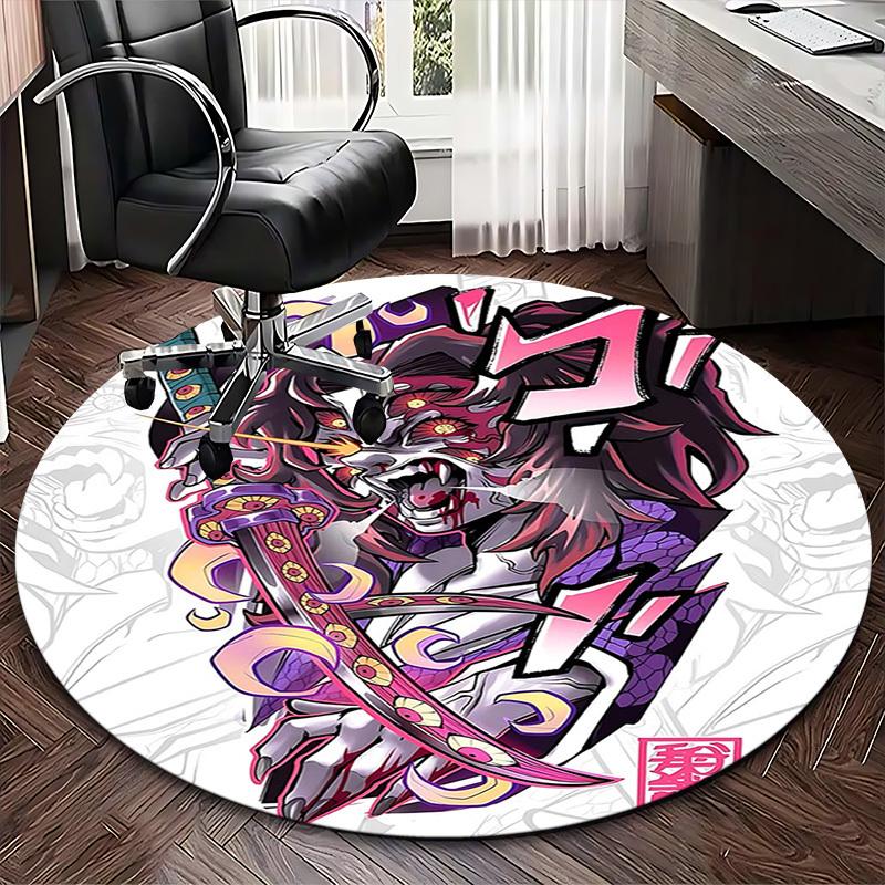 1pc Anime Demon Slayer Design Round Carpet Office Chair Mat, NonSlip Rug for Home Decor, Seasonal Gift, Suitable for Office