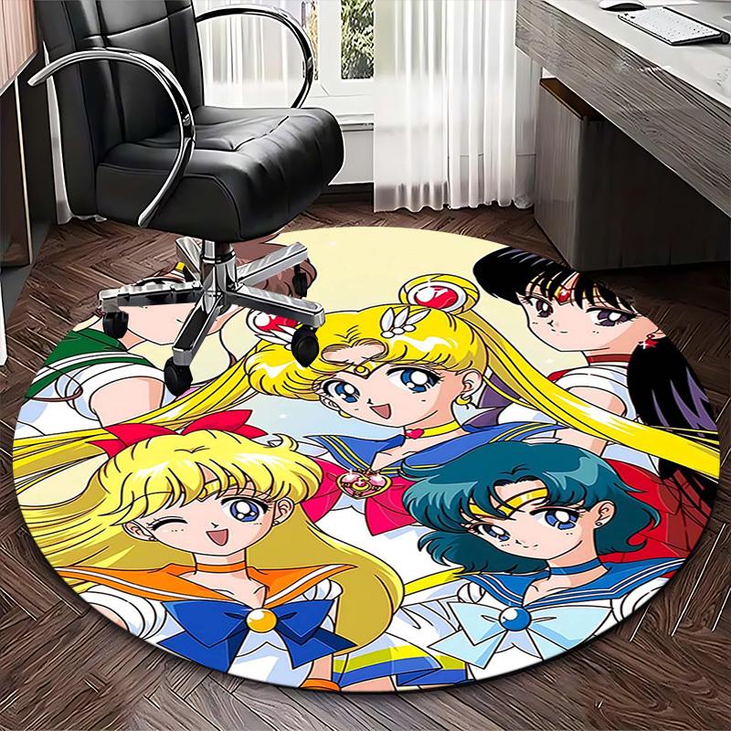 1pc Sailor Moon Anime Cartoon Design Round Carpet Office Chair Mat, NonSlip Rug for Home Decor, Living Room, Bedroom