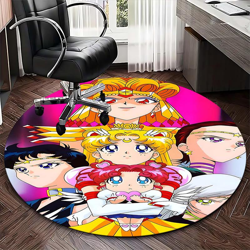 1pc Anime Cartoon Design Sailor Moon Round Carpet Office Chair Mat, NonSlip Rug for Home Decor, Living Room, Bedroom