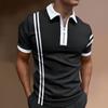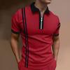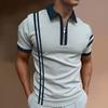 Men's Casual Striped Zipper-Collar Short-Sleeve Shirt