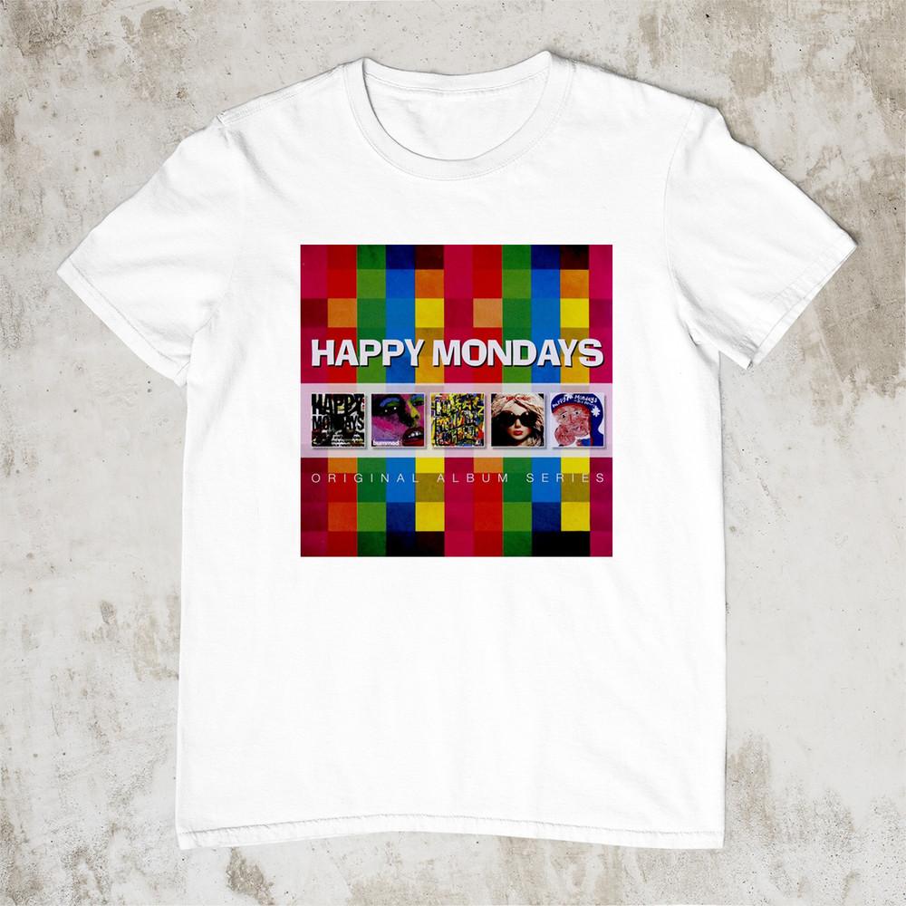 Happy Mondays Band White T-shirt Short Sleeve Album Collage 1T244 Unisex T-Shirt
