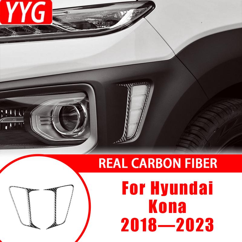 For Hyundai Kona 2018— Car Accessories Carbon Fiber Exterior Front Lamp Sides Frame Decals Cover Trim Sticker Modification