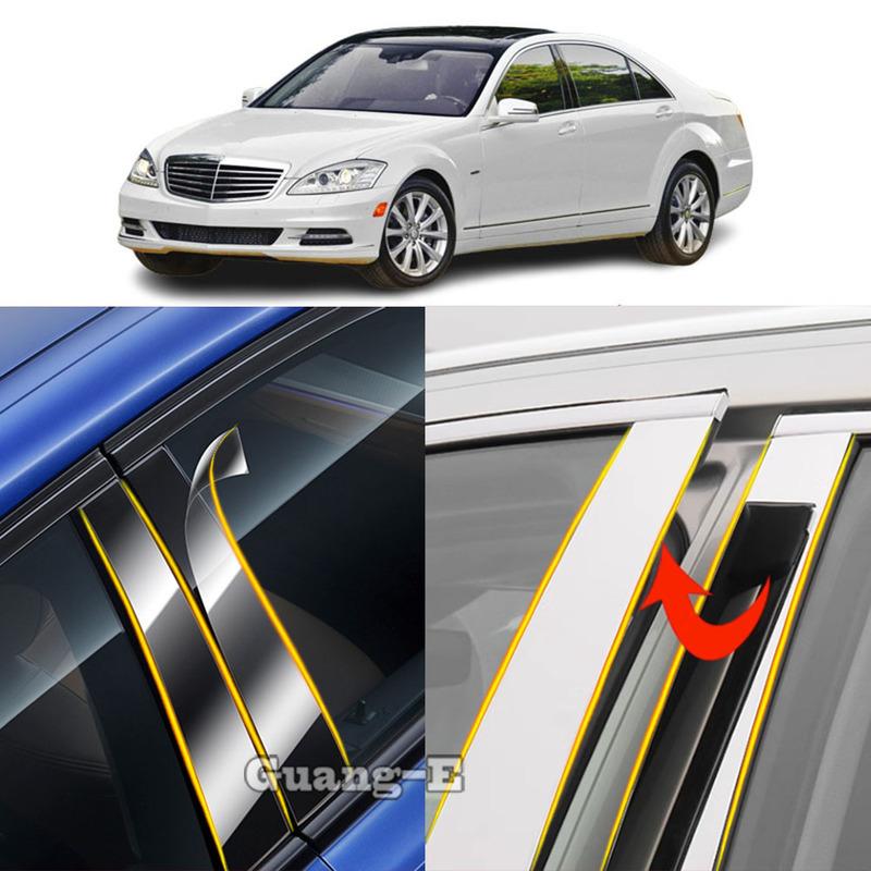 Car TPU/Glossy Mirror Pillar Post Cover For Mercedes Benz S-Class W221 2006 2007 2008-2013 Door Trim Window Decorative Sticker