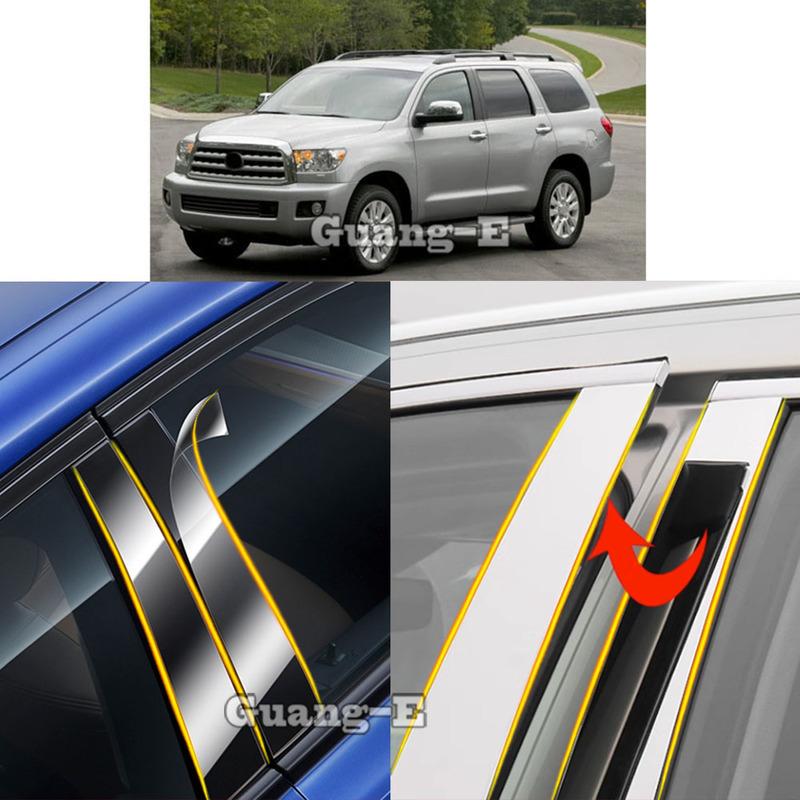 Car TPU/Glossy Mirror Pillar Post Cover For Toyota Sequoia 2009 2010 2011 2012 2013 2014 2015- Door Trim Window Sticker
