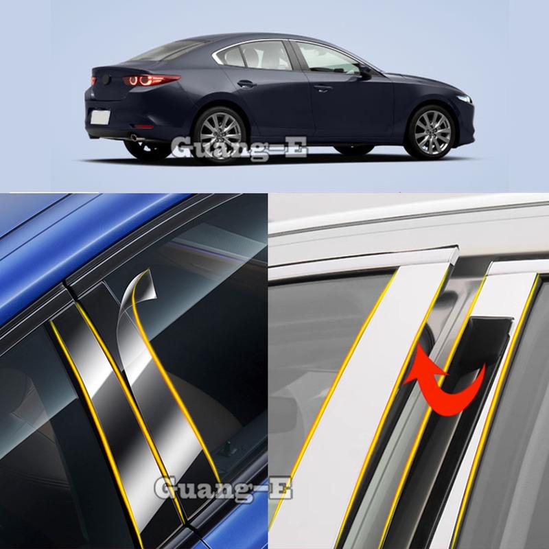 Car TPU/Glossy Mirror Pillar Post Cover For Mazda 3 Mazda3 Axela Sedan -2024 Door Trim Window Stickers Accessories 8pcs