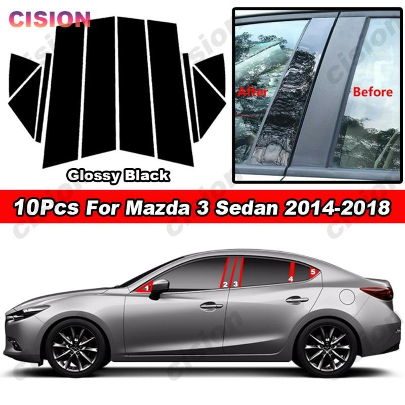10x Glossy Piano Black Car Door Window Center Column Middle BC Pillar Post Mirror Effect Cover Trim PC Sticker For Mazda 3 BM BN