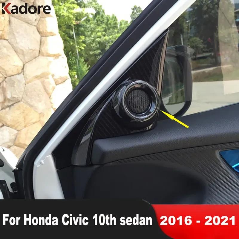 Car Front Inner Door A Pillar Speaker Triangle Cover Trim For Honda Civic 10th Sedan 2016- Carbon Fiber Interior Accessories