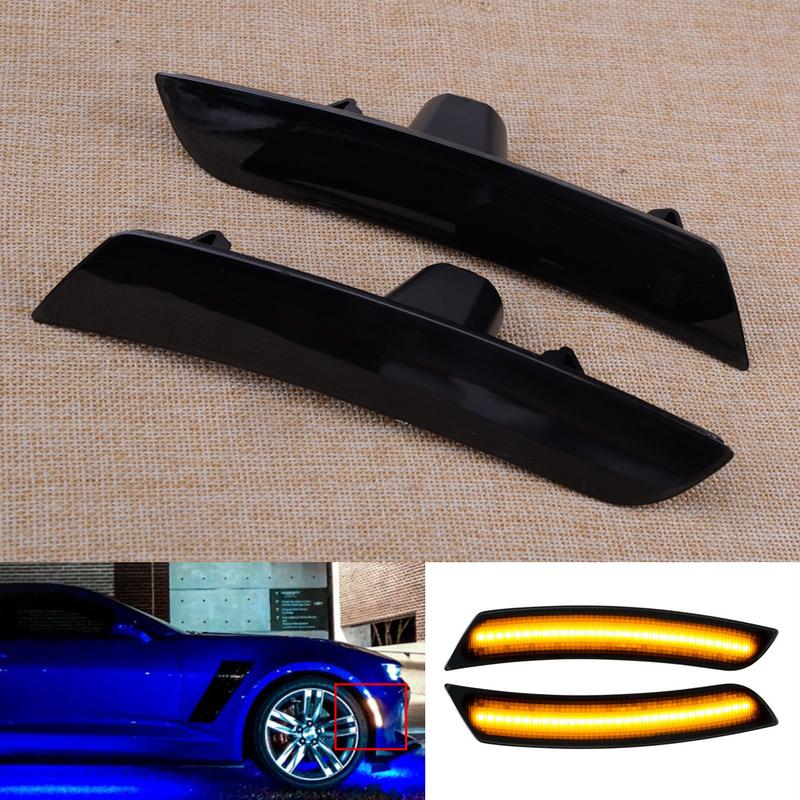 2Pcs Front Smoked Amber LED Side Marker Light Fit for Chevy Camaro Cadillac CTS ATS 2016-2018