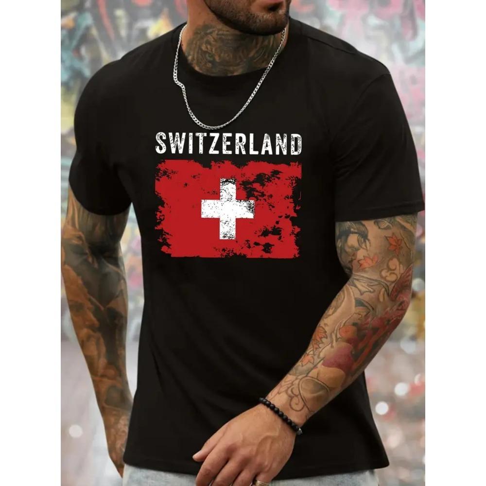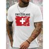 European Sizes Men's Swiss Flag Graphic T-Shirt - White with Red Cross Design, Casual Summer Tee, Regular Fit, Crew Neck, Lightweight & Breathable