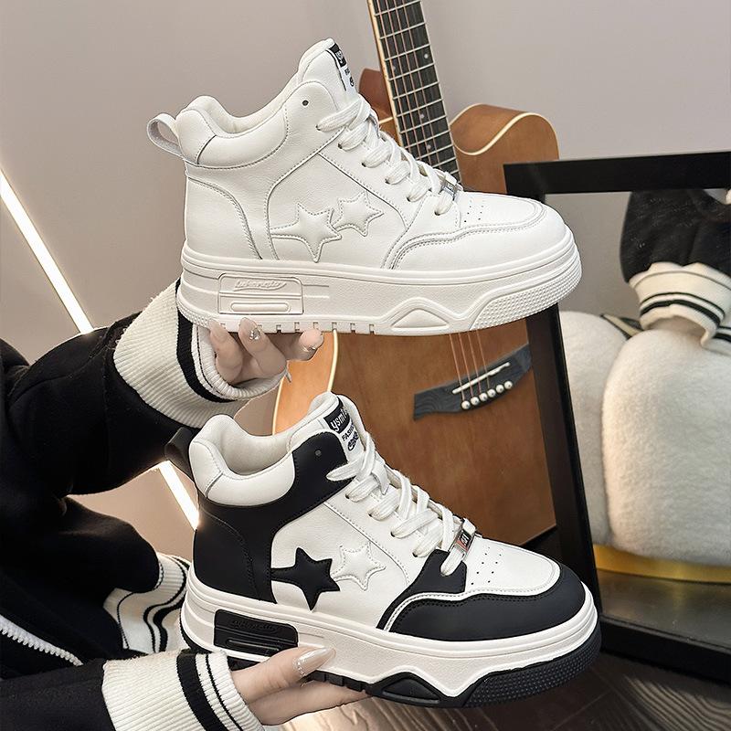 High-top Women Ins Autumn and Winter New Versatile Leather Platform Casual Board Shoes Gaobang Sports Shoes