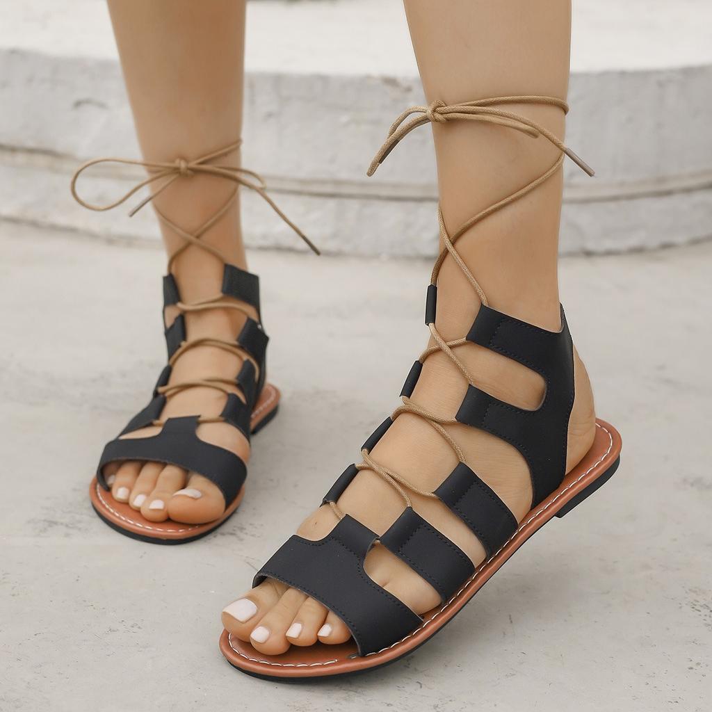 New Flat Bottom Cross Strap Sandals Bohemian Beach Roman Shoes Large Size