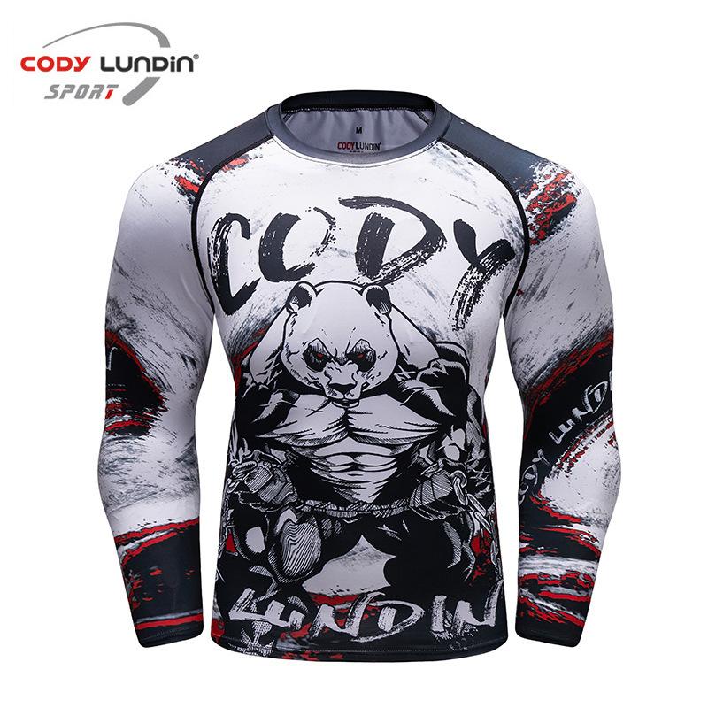 Round Neck Printed Top For Sports, Fitness, Leisure, Tight Fitting Long Sleeved Men