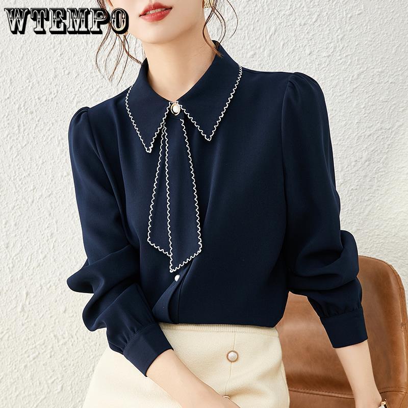 Autumn and Winter Women's Shirt with A Bow New Design Long Sleeved Temperament Chiffon Shirt Base Top
