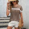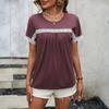 Women's Fashionable Loose-fitting Round-neck Short-sleeved T-shirt With Lace Splicing.