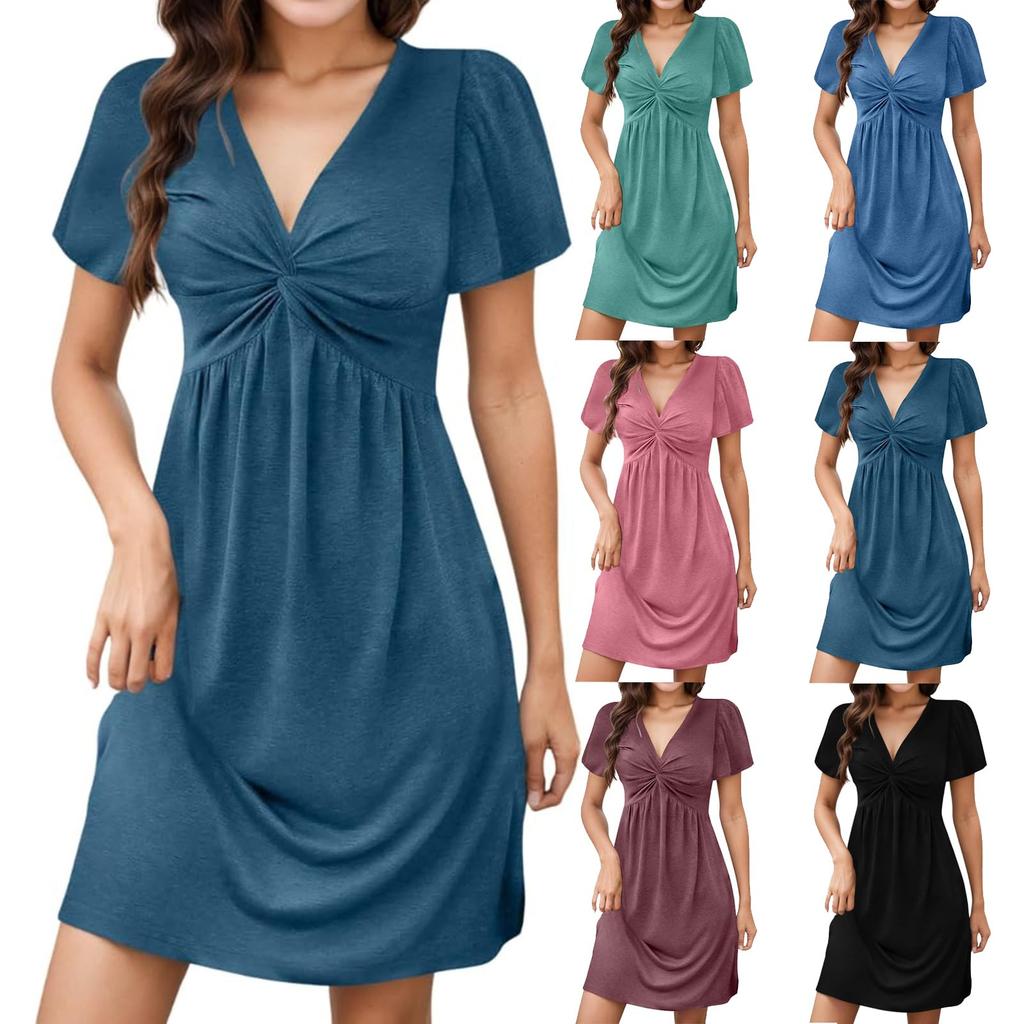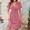 Women's Fashion Casual Dress V-neck Short Sleeve Kink -Color Dress