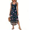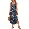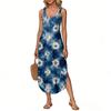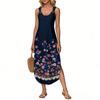 Women's Summer Long Dress, Sleeveless With Side Slits, Long Retro Printed Camisole Dress