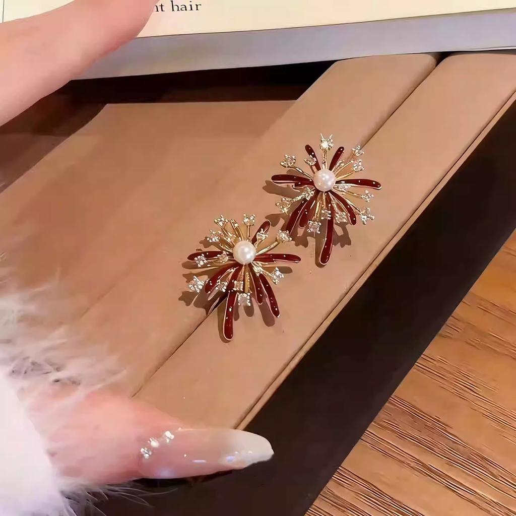 Fashionable Earrings With Sparkling Red Glaze And Fireworks Earrings