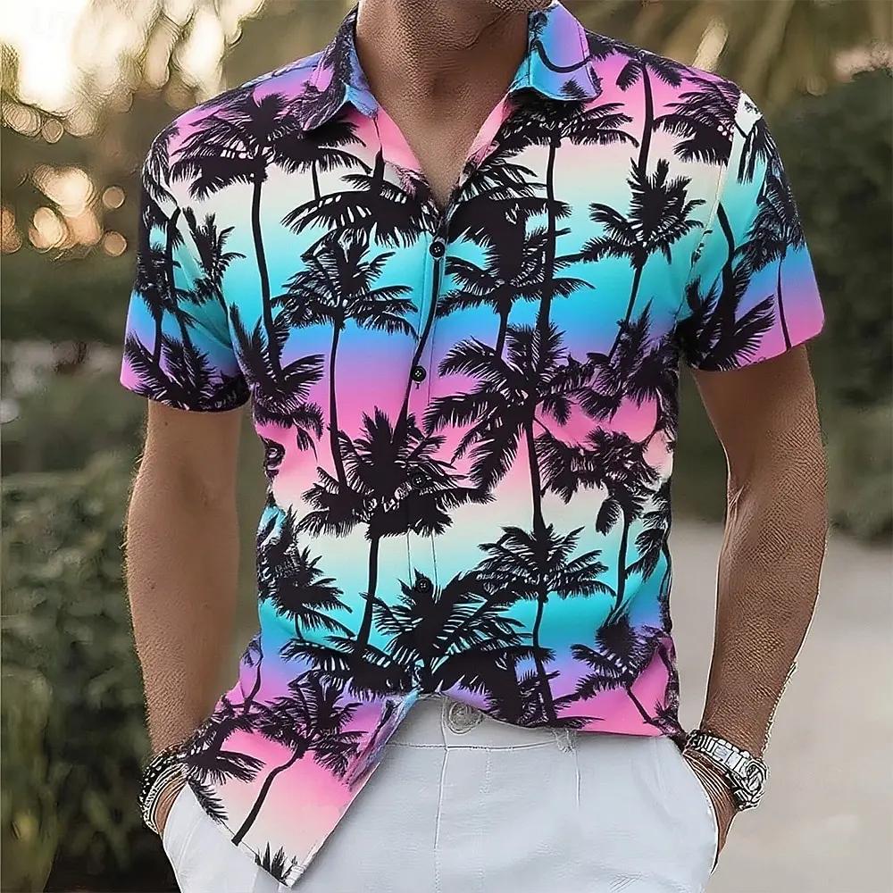 Men's Summer Short Sleeve Hawaiian Shirt Beach Holiday Print Shirt Top 100% Polyester