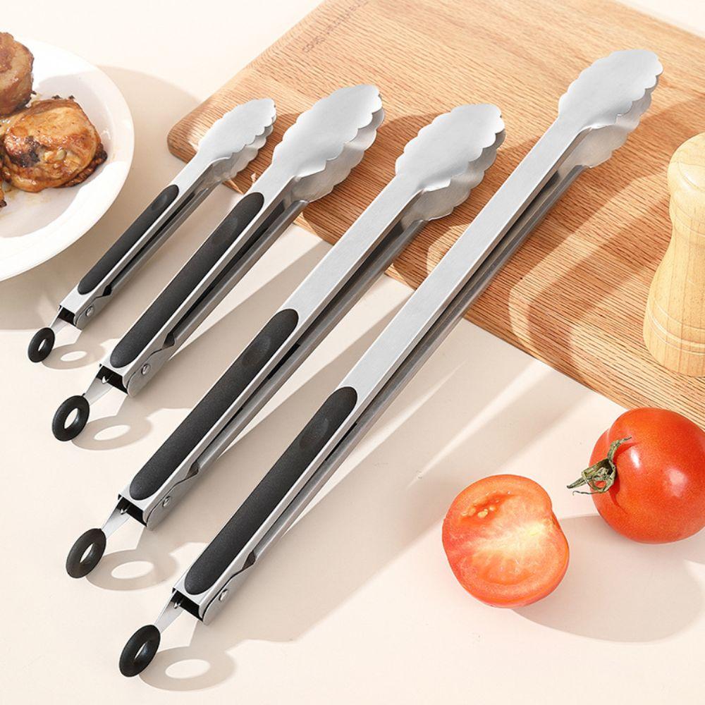 New Stainless Steel Barbecue Tongs Non-Slip Thickened Bread Tongs Lengthened Multifunctional Food Tongs Kitchen Gadgets