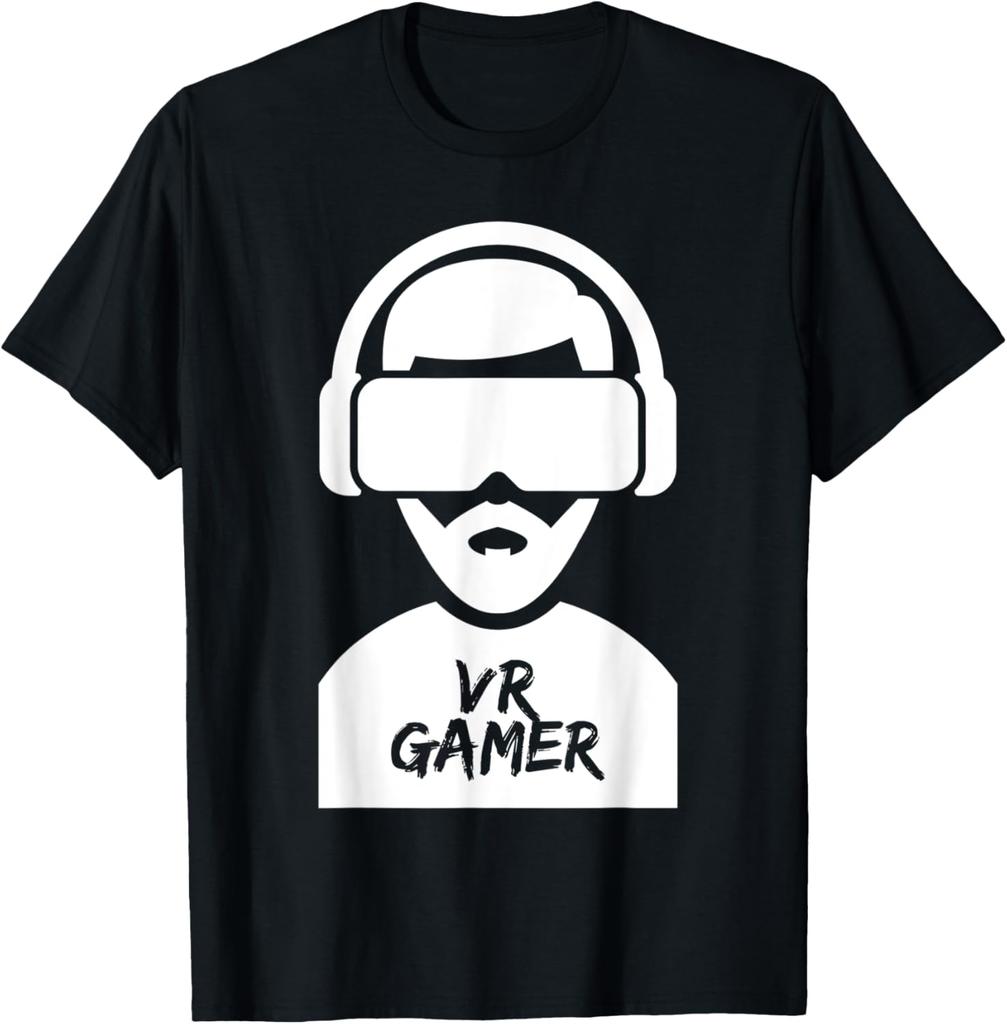 VR Gamer TShirt Virtual Reality Headset Graphic Print Cotton Casual Tee for Men