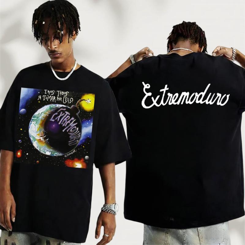 SpringSummer Graphic Rock Band Tee EXTREMODURO Tour Pattern Printed Cotton Fashion Casual Short Sleeve Round Neck Tshirt