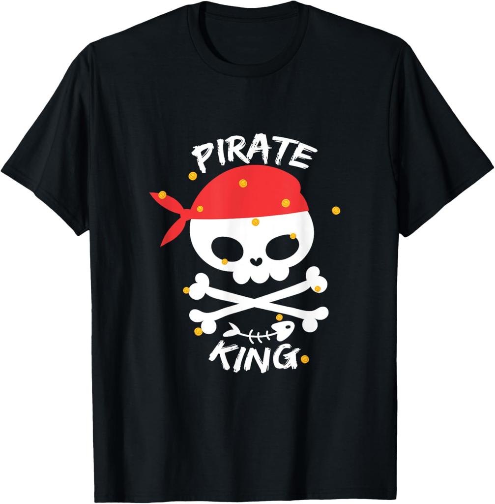 Pirate King Skull Red Bandana Graphic Tee Soft Cotton Casual Crewneck TShirt for Men
