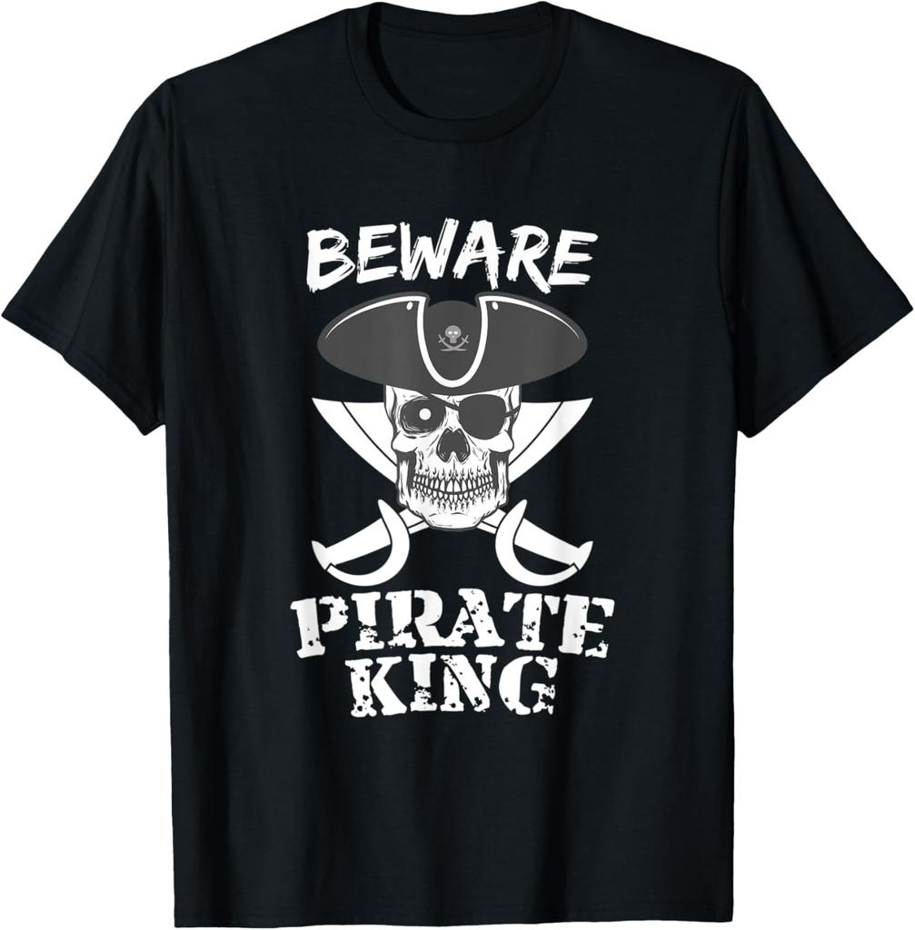Beware Pirate King Skull and Crossed Swords Graphic Tee Casual Cotton Short Sleeve TShirt