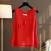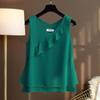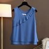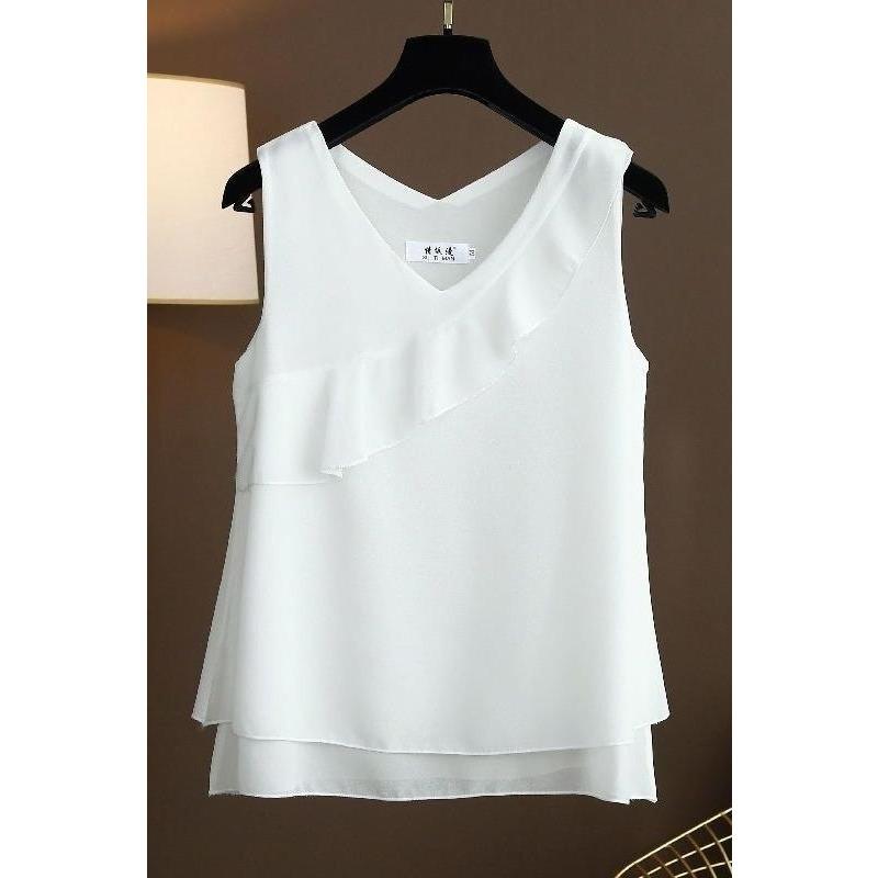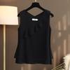Women's Black Sleeveless V-neck Top with Asymmetric Ruffle Layered Hem
