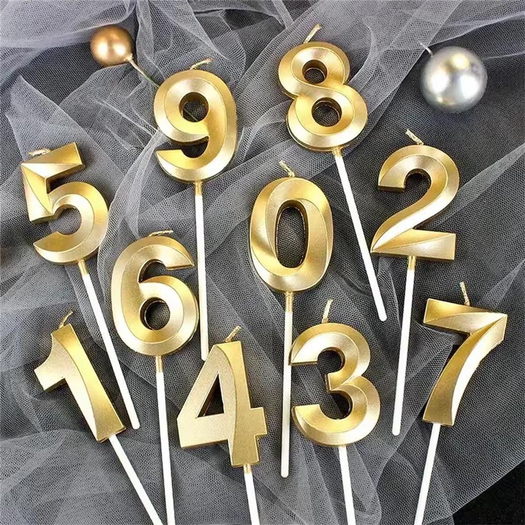 1pc-Birthday Candle Golden Number 0-9 Smoke Free Birthday Cake Insert Party Candle Decoration Anniversary Cake