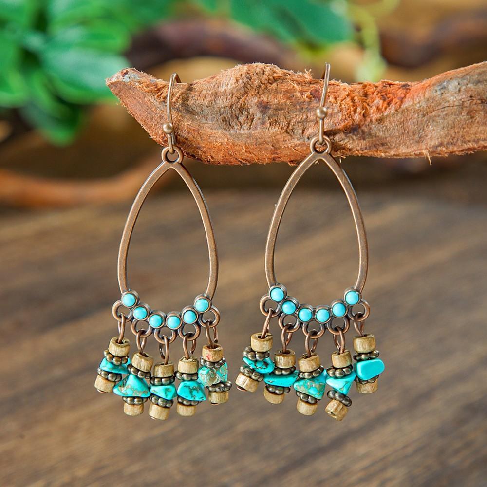 Bohemian Vintage Earrings Leaf Drop-shaped Tassel Earrings