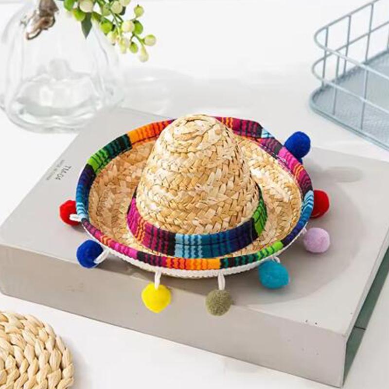 Pet Theme Party Mini Straw Hat Mexican Hat Holiday Cat Puppy Colorful Mini Hat Sombrero Beach Hawaii Style Sun Hat Pet Supplies