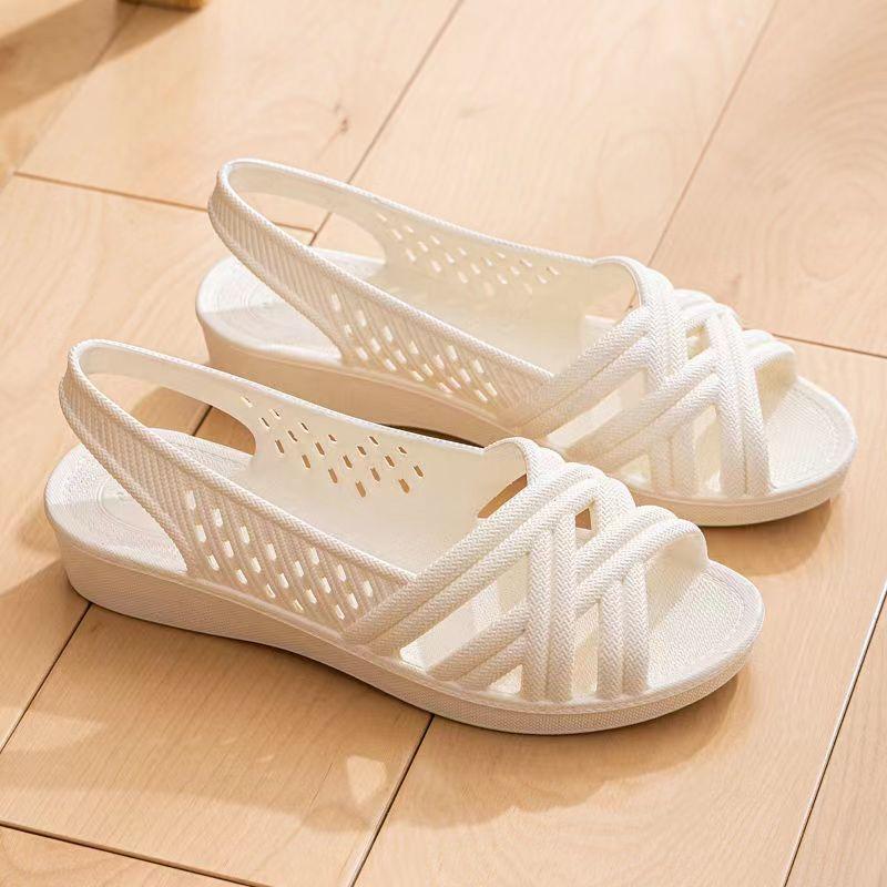 Summer Women's Slip-On Hollow Out Sandals Soft Sole Non Slip Wedges Fish Mouth Sandals Outdoor Beach Sandals Mom Sandals