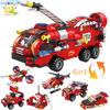 HUIQIBAO 387pcs 6in1 Fire Fighting Trucks Building Blocks City Rescue Helicopter Bricks 6 Fireman Toys For Children Kids Gift