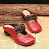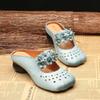 Women's Leather Hollow Out Baotou Block Heel Slipper Summer Soft Sole Non Slip Ethnic Style Flower Outdoor Half Slipper Slippers