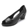 Women's Summer New Block Heel Peep Toe Leather Sandals Soft Sole Non Slip Hollow Out Light Shallow Slip On Middle Aged Sandals