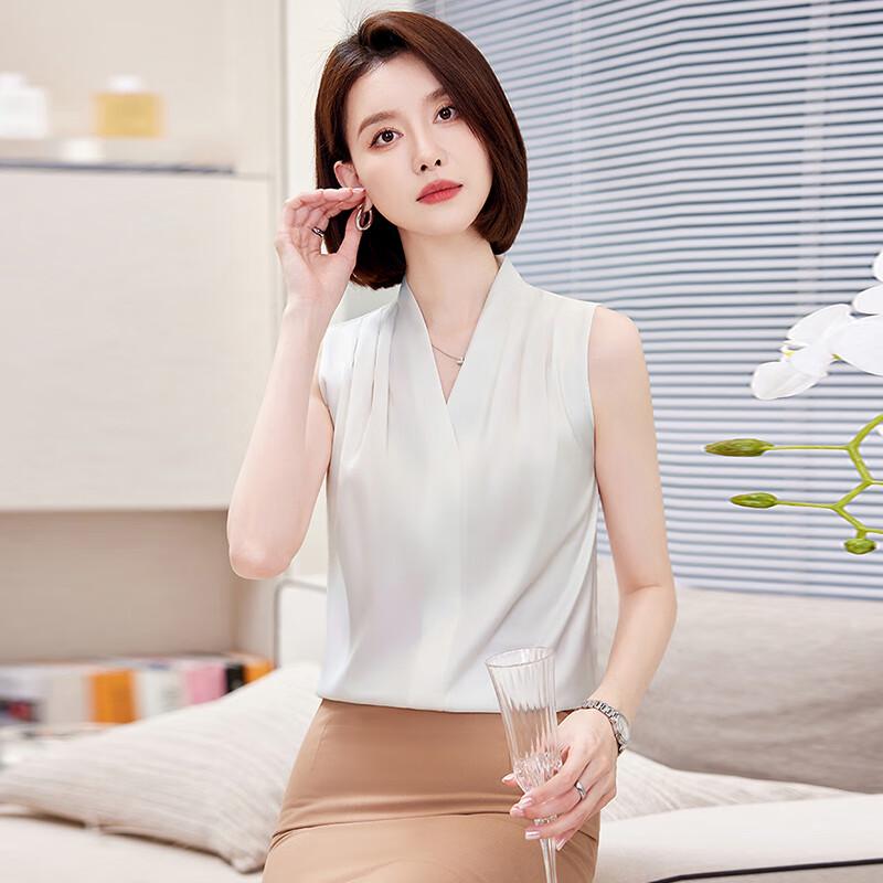 Women's Elegant V-neck Sleeveless Chiffon Blouse