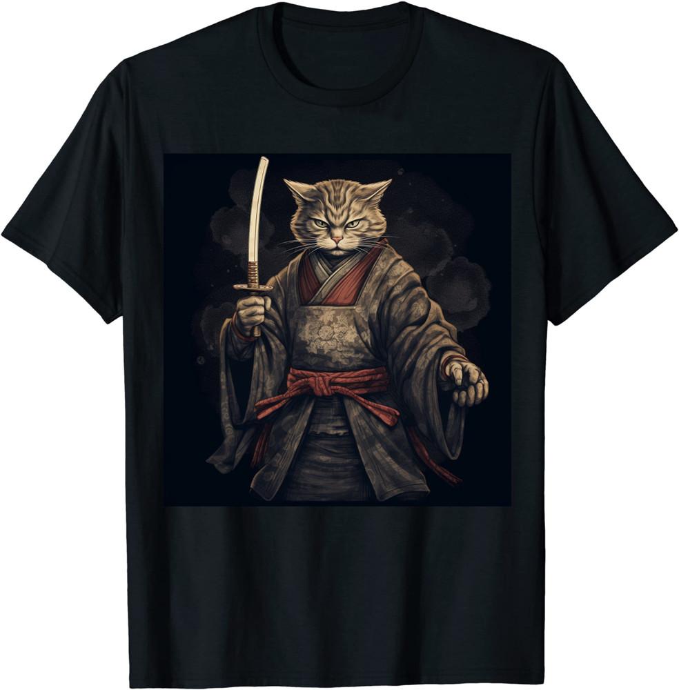 Vintage Samurai Cat Japanese Ninja Art T-Shirt Size S-5XL Unisex T-Shirt