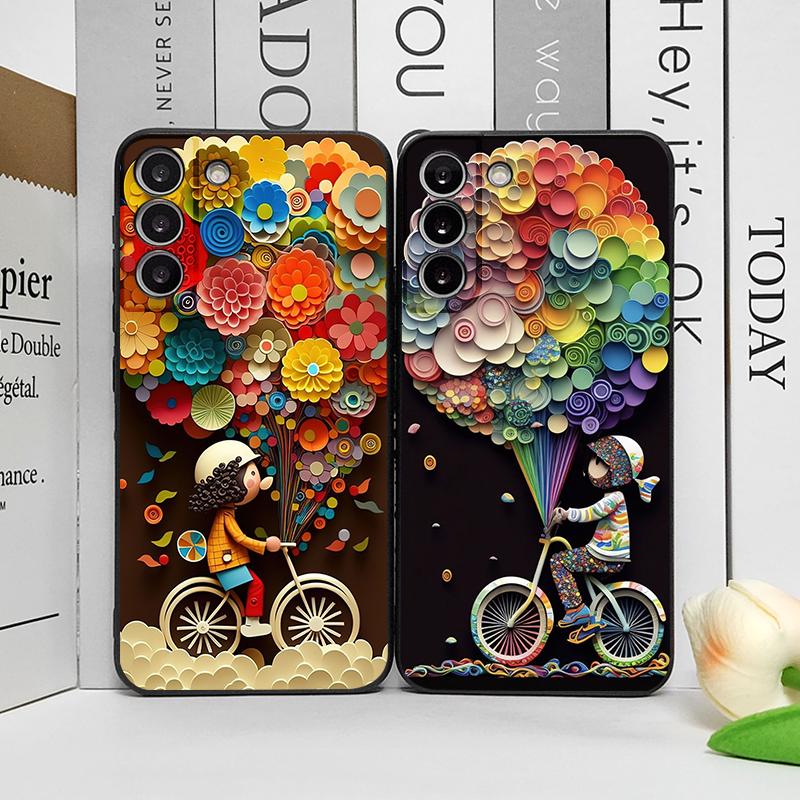 Cute Girl Boy Bicycle Balloon Couple Phone Case for Google Pixel 9A 8A 7A 6A 6 7PRO 8 9 Pro XL 5G Shockproof Silicone Soft Cover