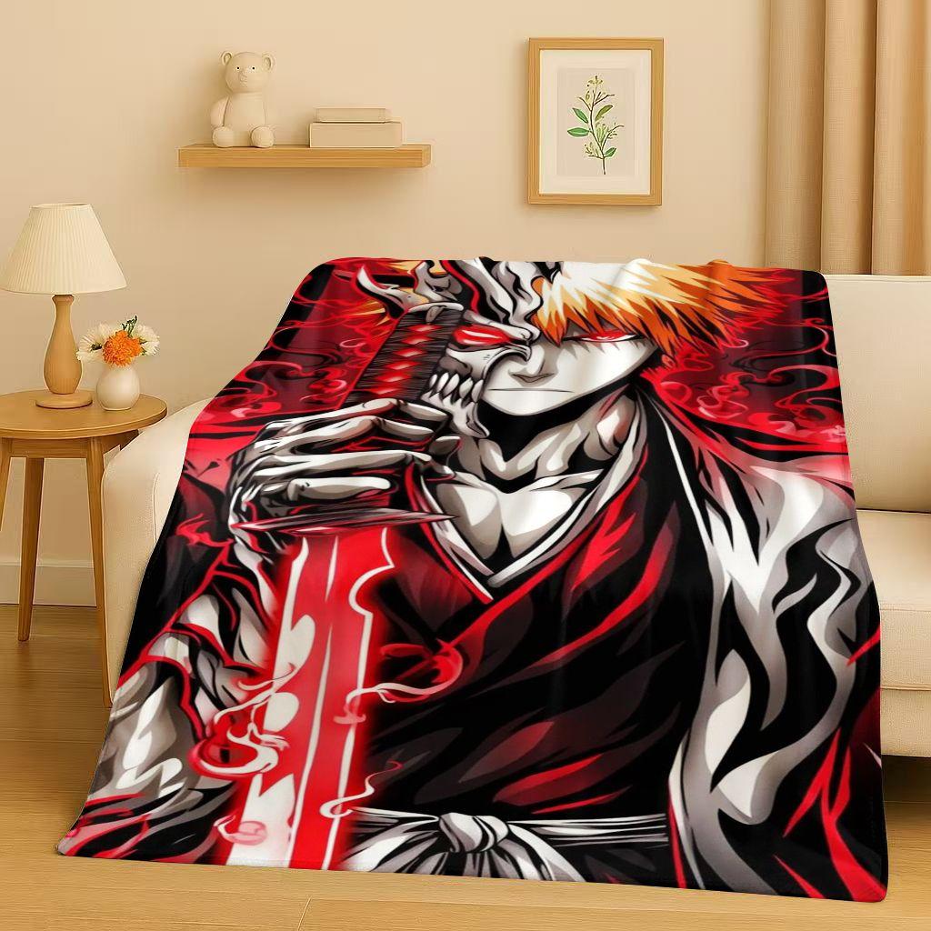 Anime Bleach Kurosaki Ichigo Cartoon Flannel Blanket,Ultra Soft Warm Plush Throw for Home Bedroom Bed Sofa Cover Travel Kid Gift