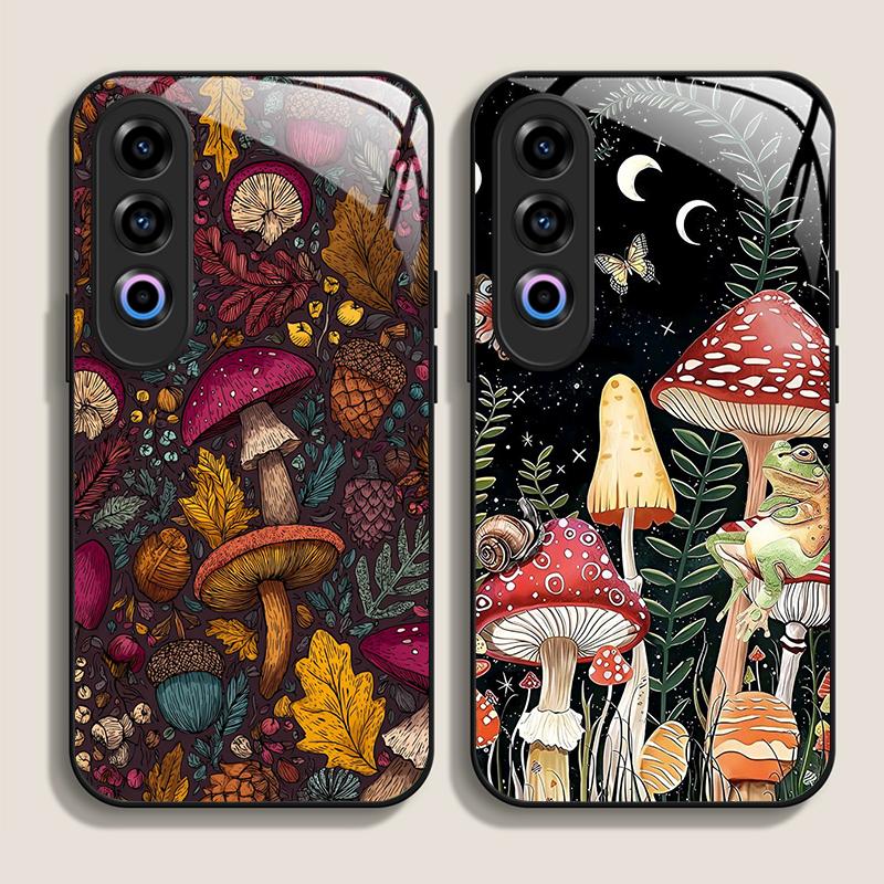 Creative Personality Mushroom Pattern Tempered Glass Phone Case for OnePlus 13R 12 11 10 9 Nord CE4 3 2 Lite ACE2 ACE3 Pro Cover