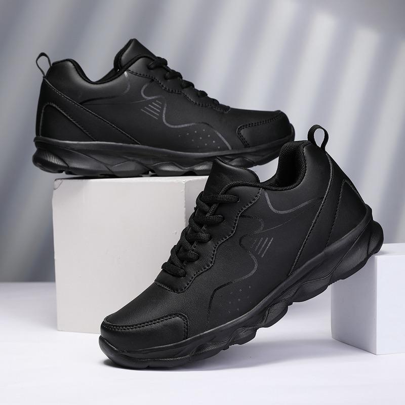 Autumn Winter Sneakers Women Soft Sole Non Slip Black Leather Sneakers Women Casual Shoes Lace Up Waterproof Women's Sport Shoes