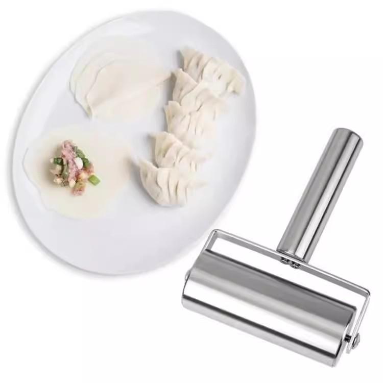 Stainless Steel Rolling Pin with Wheels for Effortless Dough and Dumpling Skin Rolling