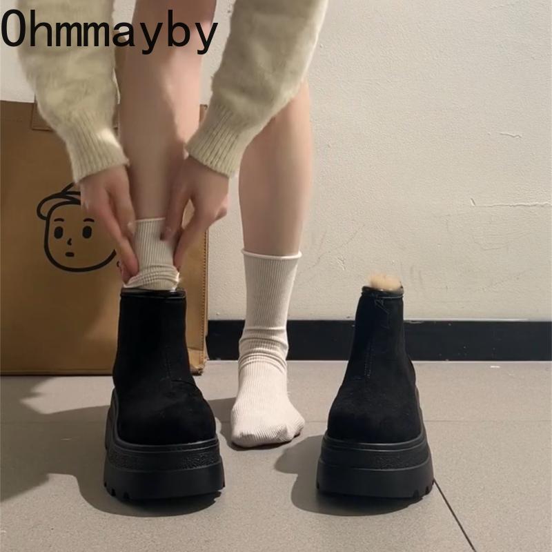 Vintage Fleece Lining Women Snow Boots Comfort Platform Thick Sole Keep Warm Cotton Short Booties Winter Women's Plush Shoes