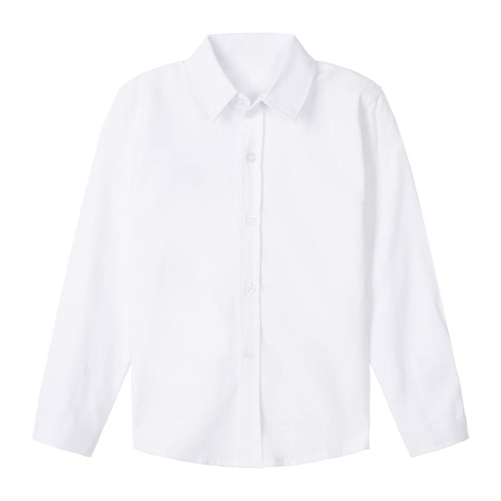 LSMUDKINGDOM Kids' Boys' Long Sleeve Oxford Button-Down Shirt, White, Size 140, Solid Color