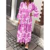 Autumn and Winter Women's Clothing Long Dress New Standing Collar Flared Sleeve Printed Casual Dress Fashionable Plus Size