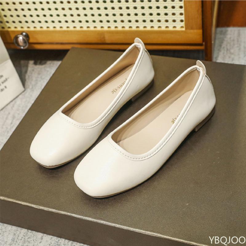 Women's Genuine Leather Low-heel Solid Color Shoes Round Toe Flat Bottom Shallow Single Shoe Casual Versatile Loafers Mujer