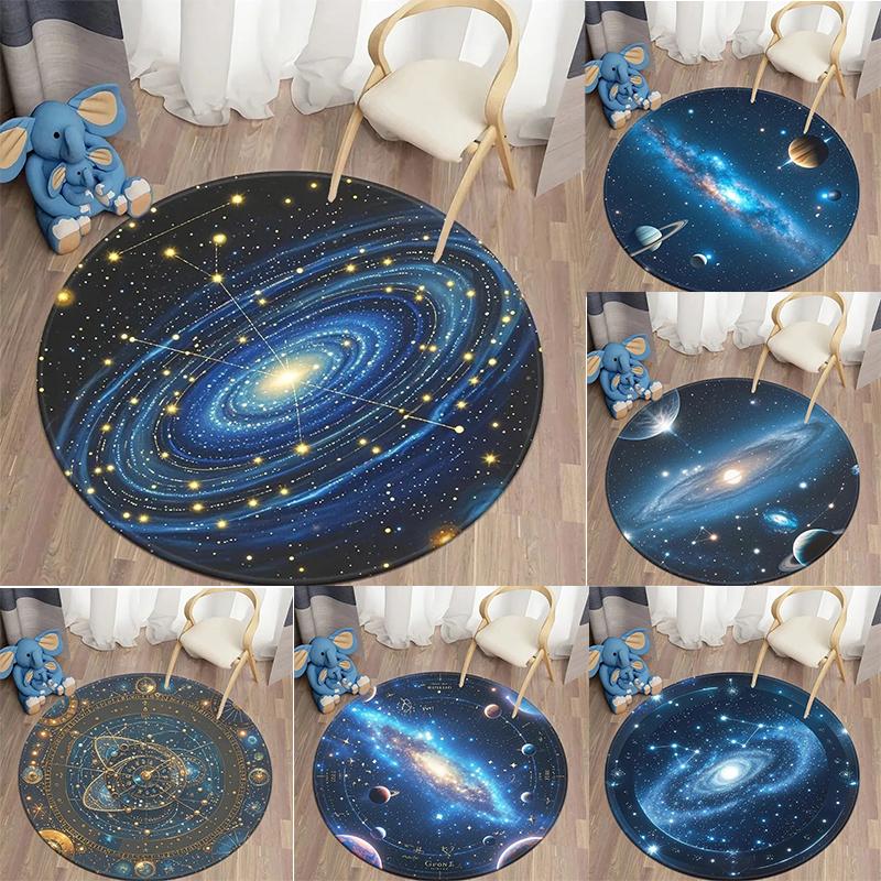 Galaxy Theme Round Carpet Exclusive for Cosmic Astronomy Enthusiasts, Soft Non-Slip Durable Floor Mat Decorative Carpet