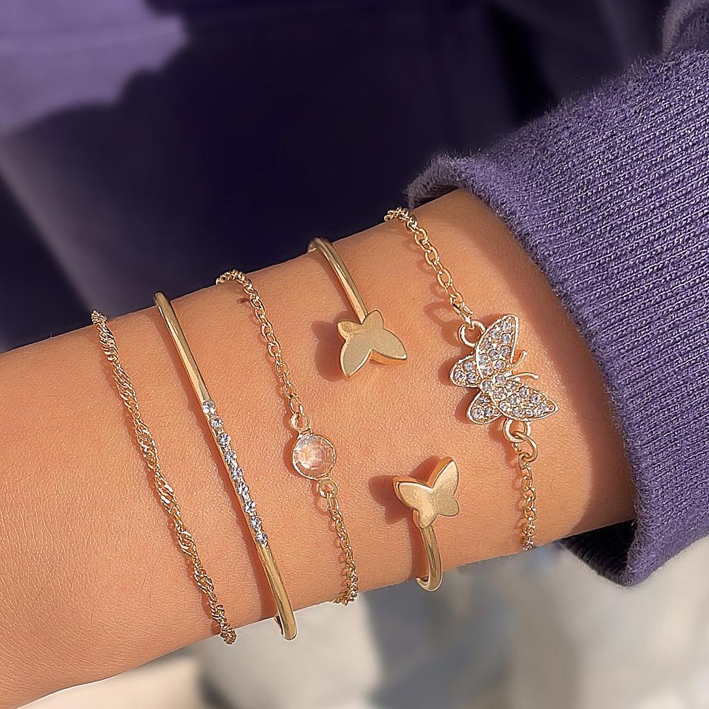 Ornaments Bracelet Ornaments Simple Butterfly Opening Diamond Set Crystal 5-piece Set Ornaments Bracelet Women
