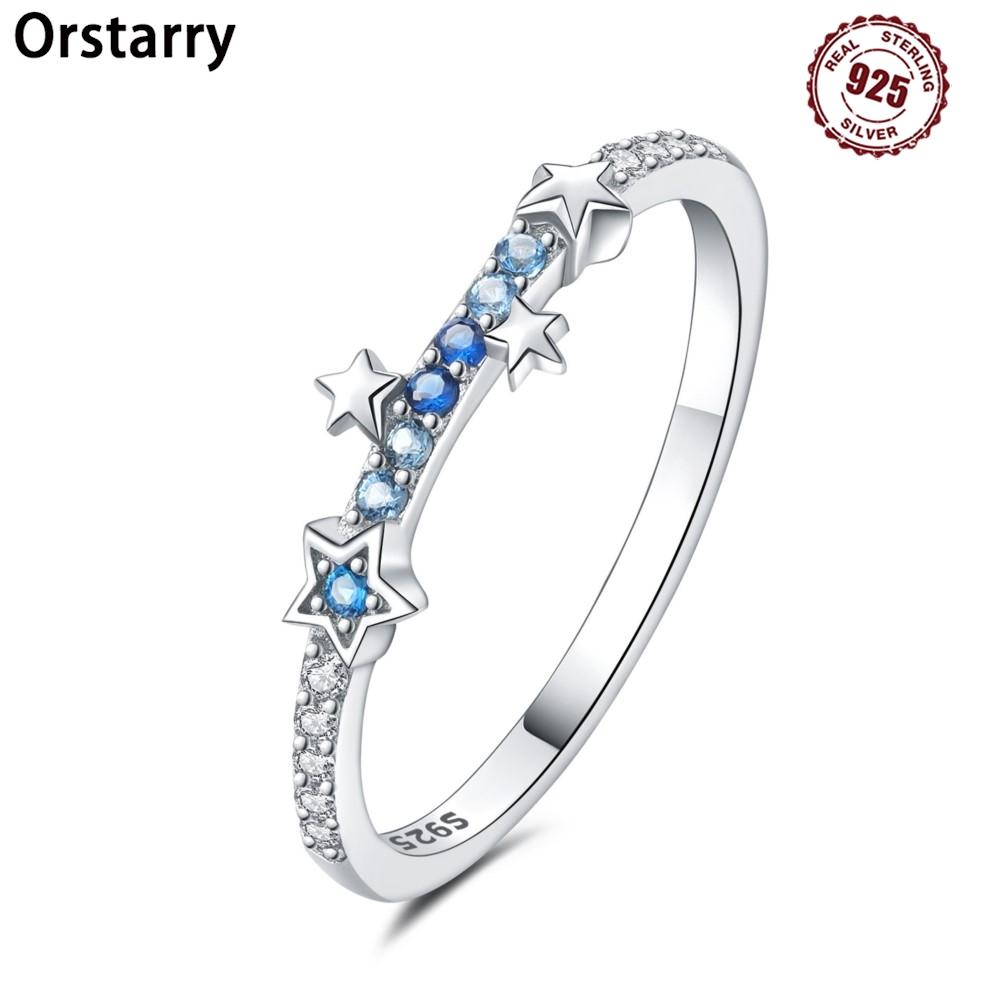 925 Silver Gradient Zircon Star Closed Ring For Women Finger Ring Personality Jewelry Birthday Party Exquisite Gifts